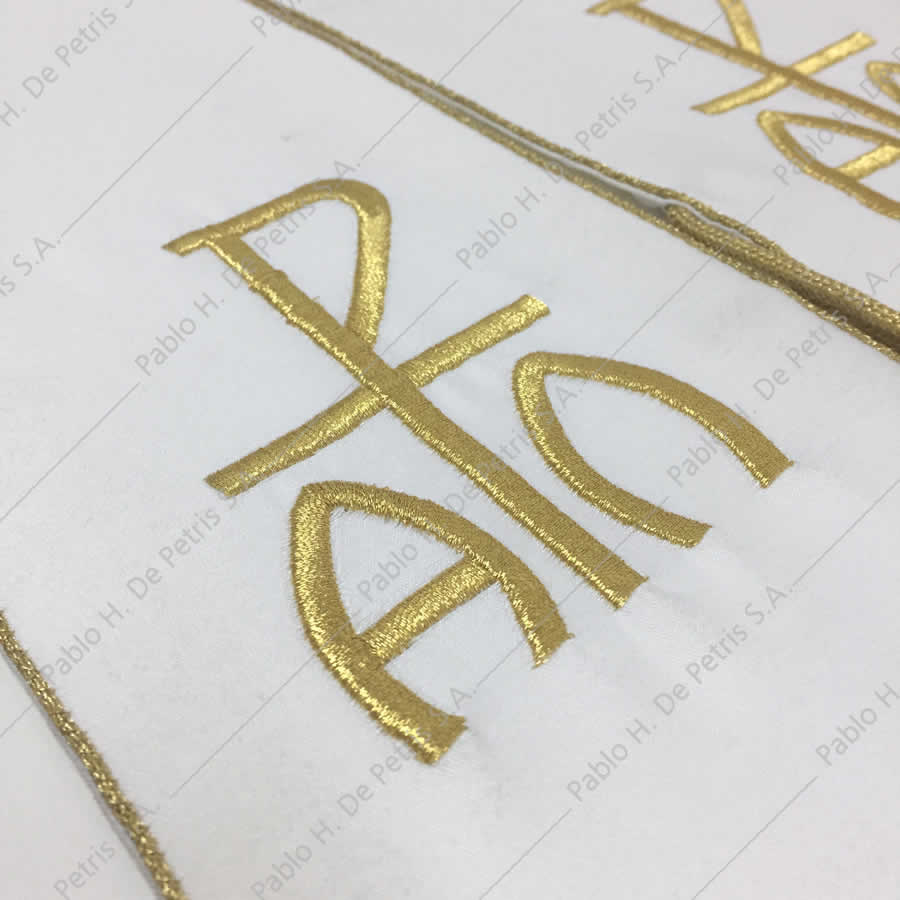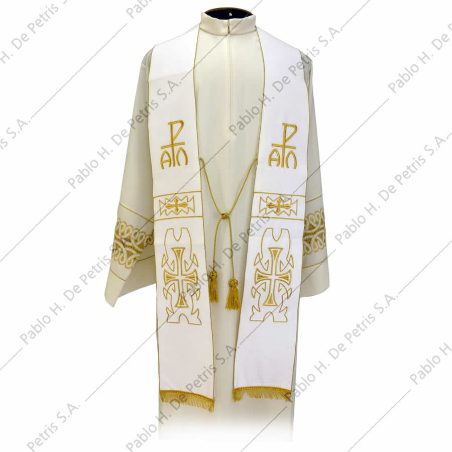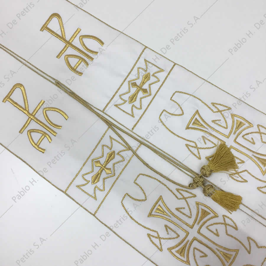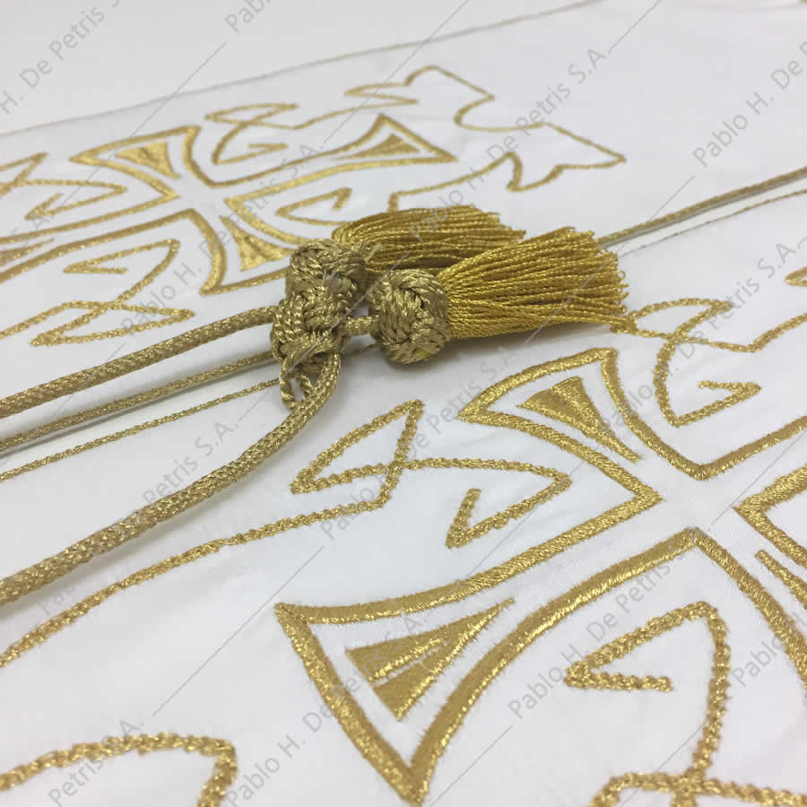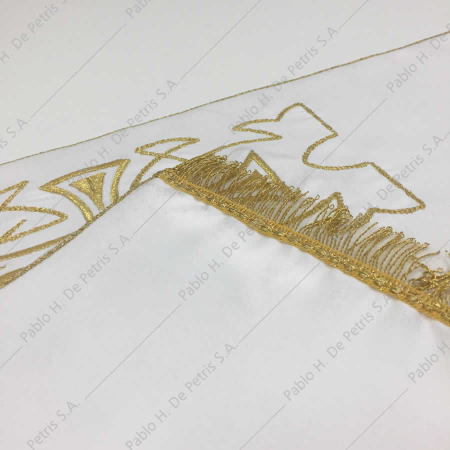Estola bordada. Realizada en mezcla de tejido natural y sintético.