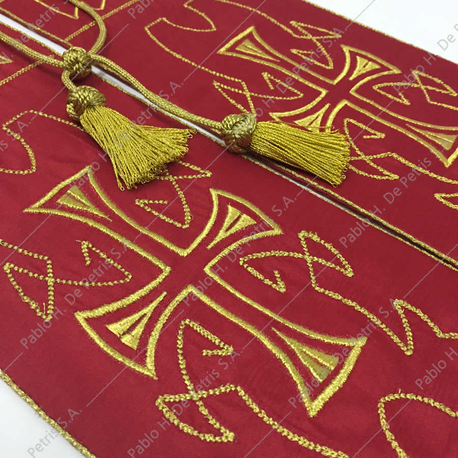 Estola bordada. Realizada en mezcla de tejido natural y sintético.