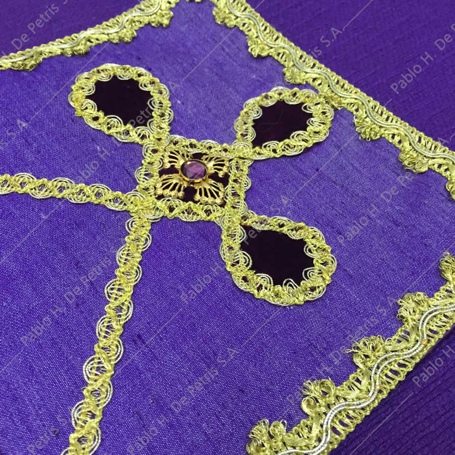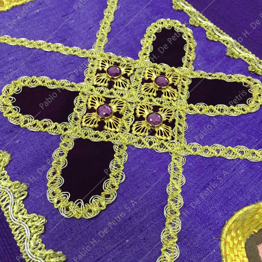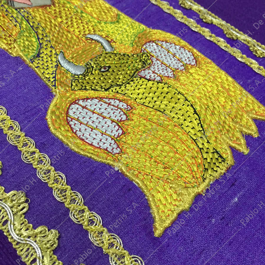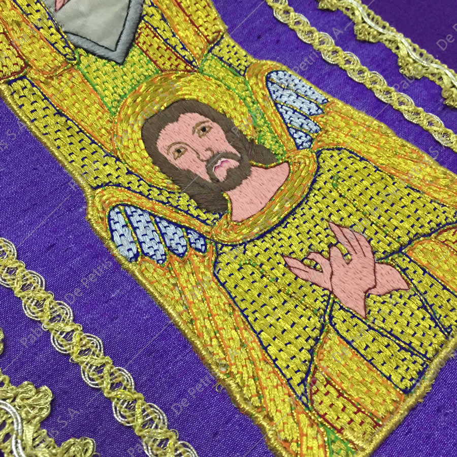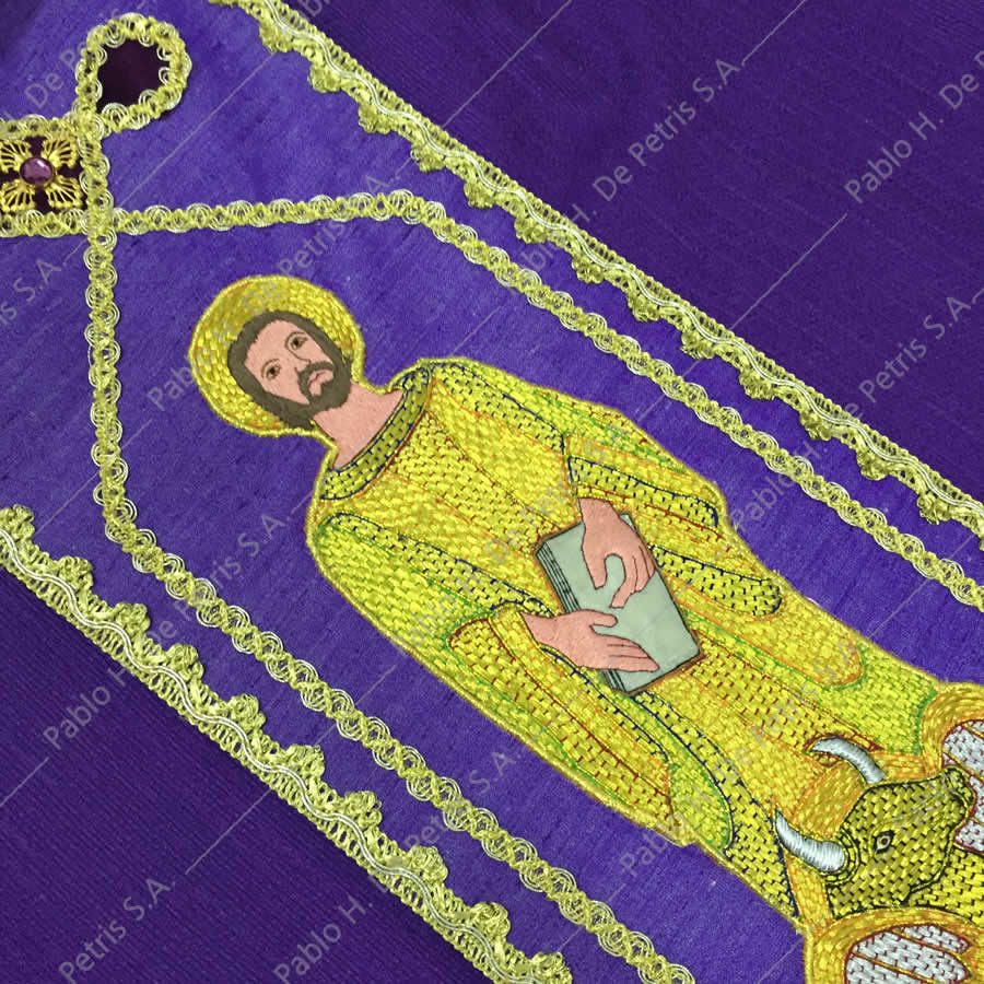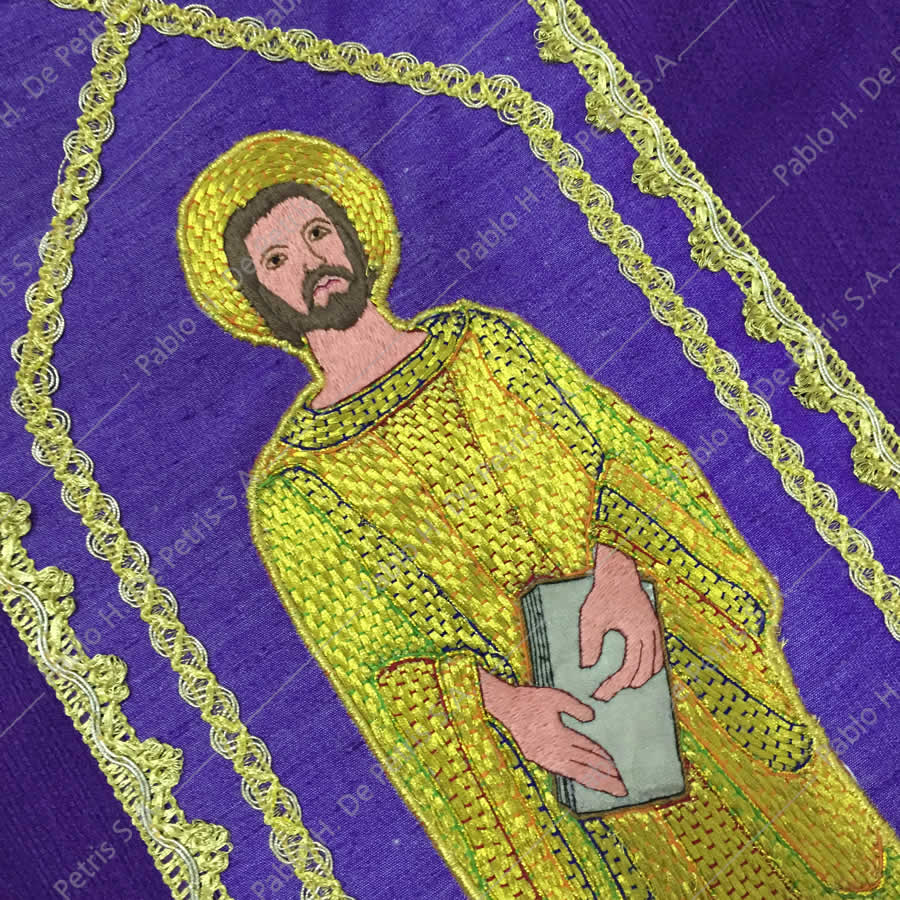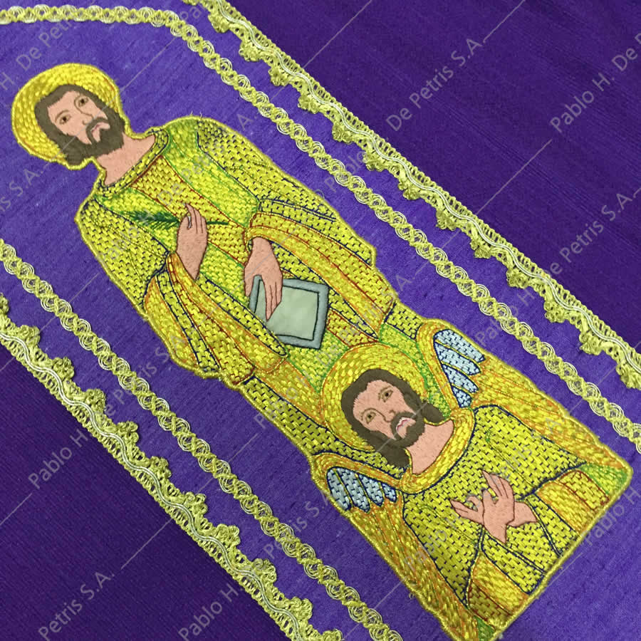Con estolón de seda bordado al frente y a la espalda con representación de los 4 Evangelistas.