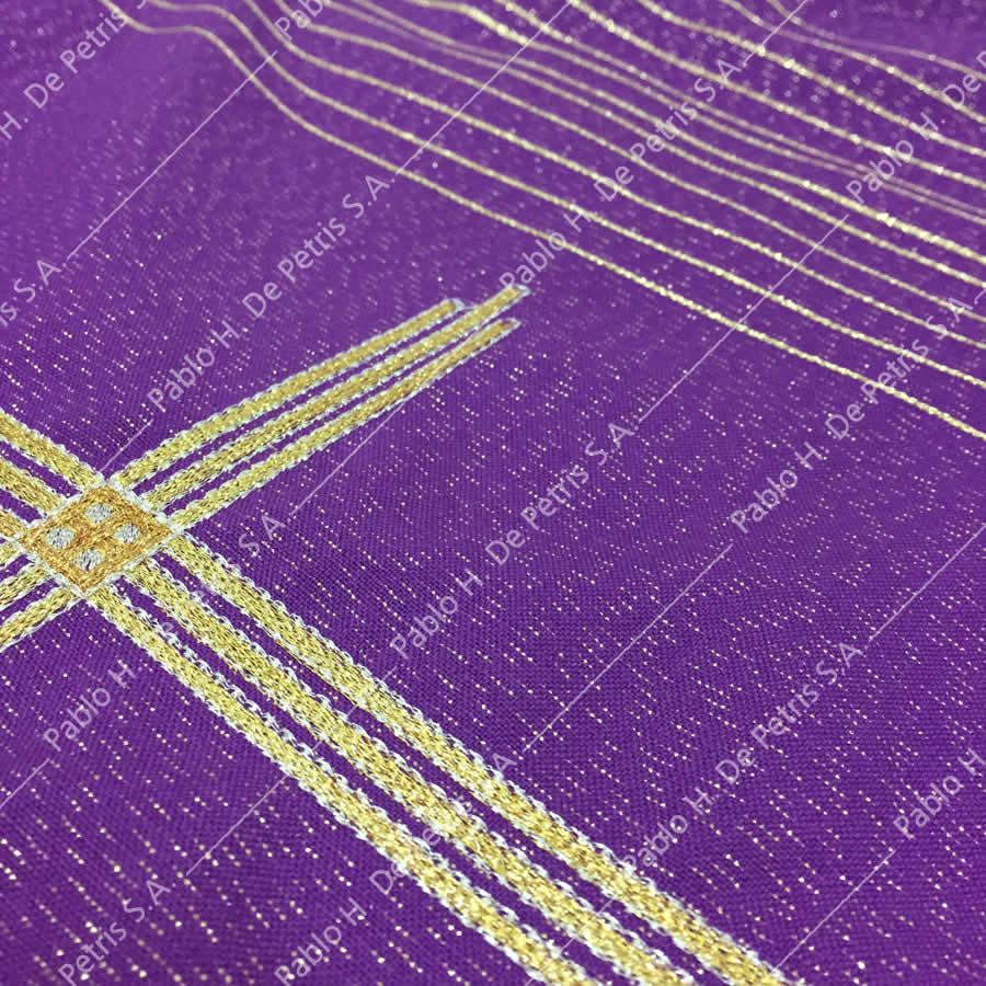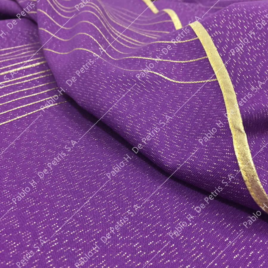 Realizada en tejido lúrex intercalado con hilos dorados.