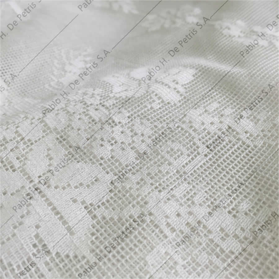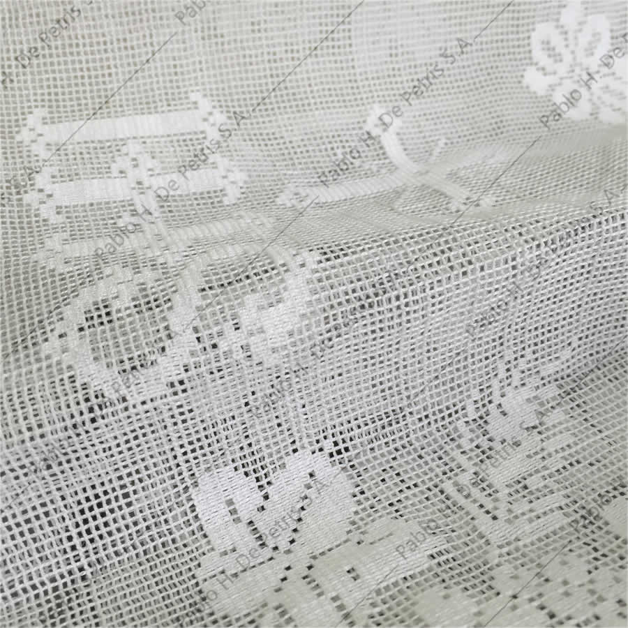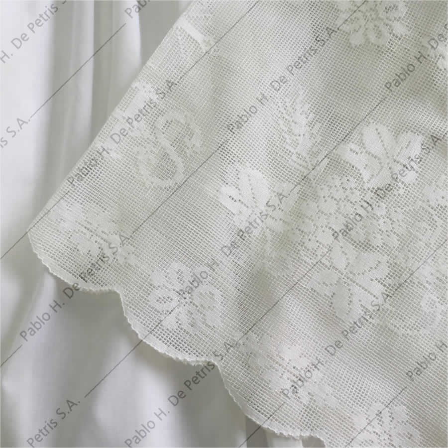 Realizado en mezcla de tejido natural y sintético. Ornamentado con una delicada puntilla en sus extremos.