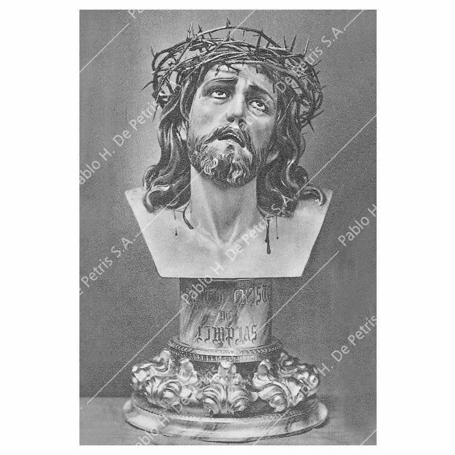 Imagen realizada en pasta madera y pintada a mano al óleo en sus colores tradicionales. Ojos de cristal. Corona espinas natural.