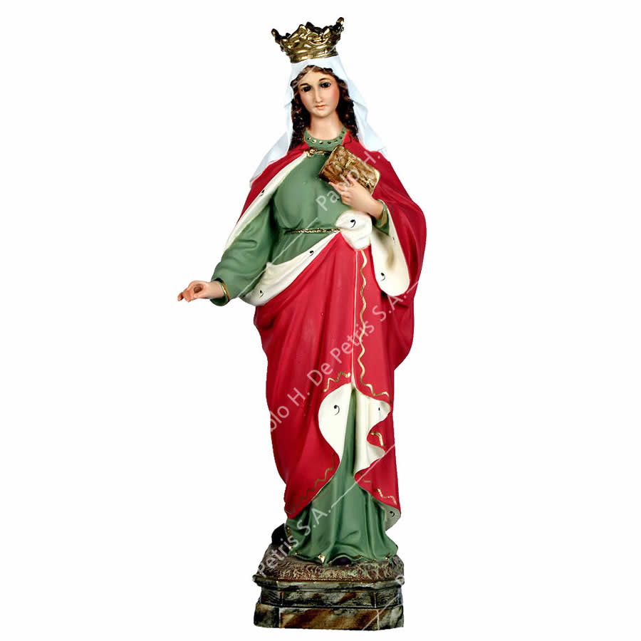 Imagen realizada en pasta madera y pintada a mano al óleo en sus colores tradicionales. Ojos de cristal. Aureola de bronce.