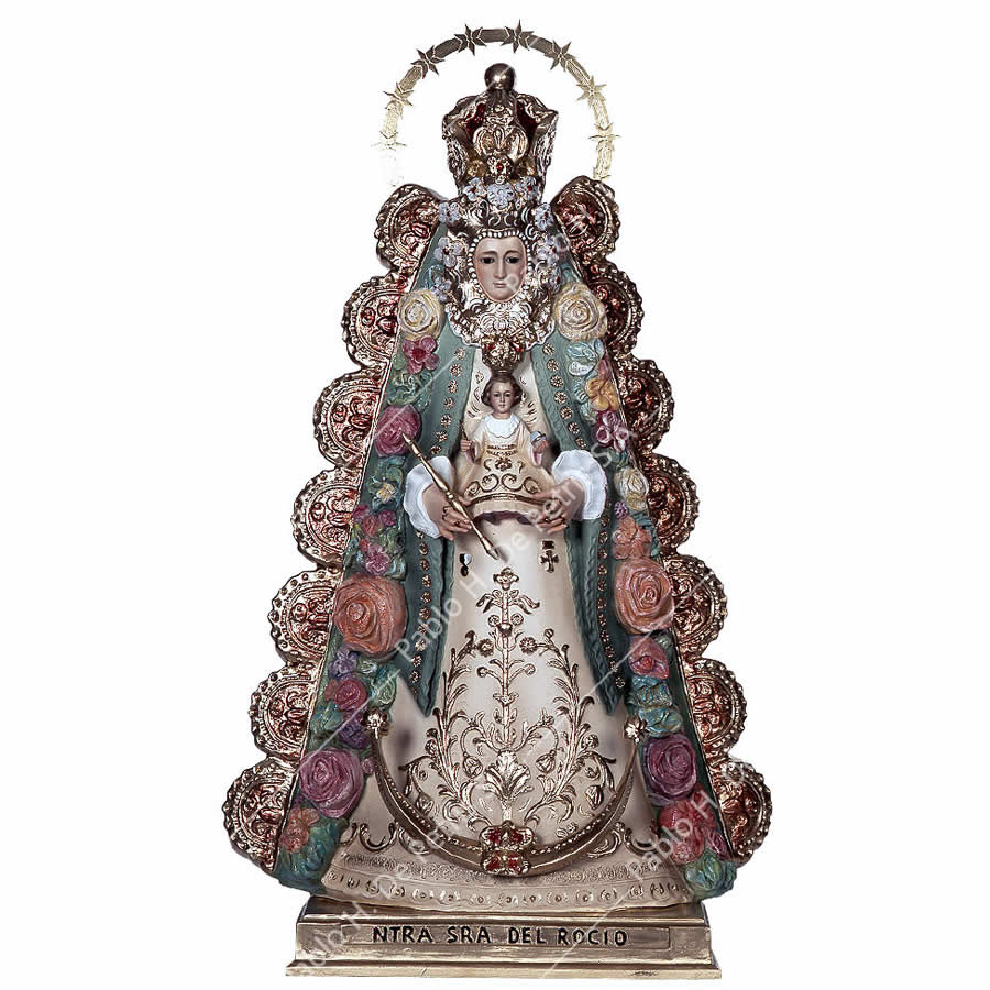 Imagen realizada en pasta madera y pintada a mano al óleo en sus colores tradicionales. Ojos de cristal. Aureola de bronce.