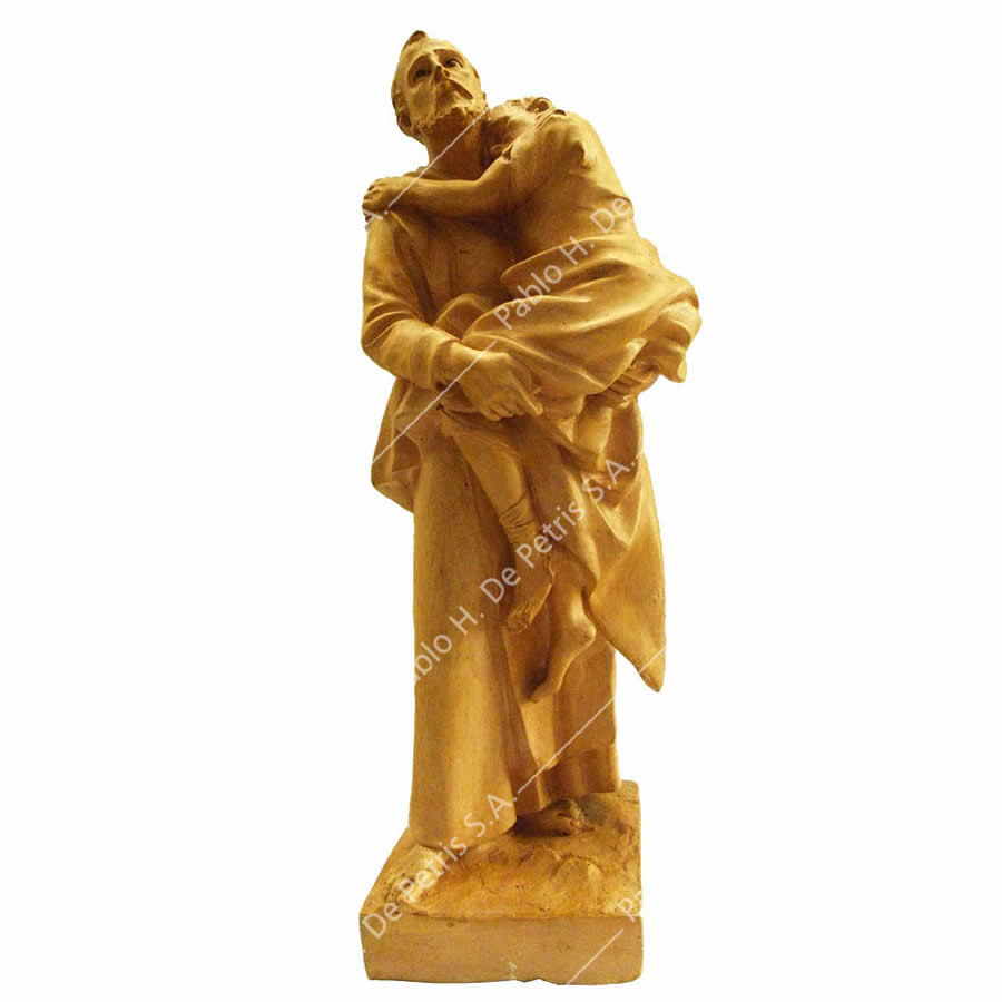 Imagen realizada en pasta madera y pintada a mano al óleo en sus colores tradicionales. Ojos de cristal. Aureola de bronce.