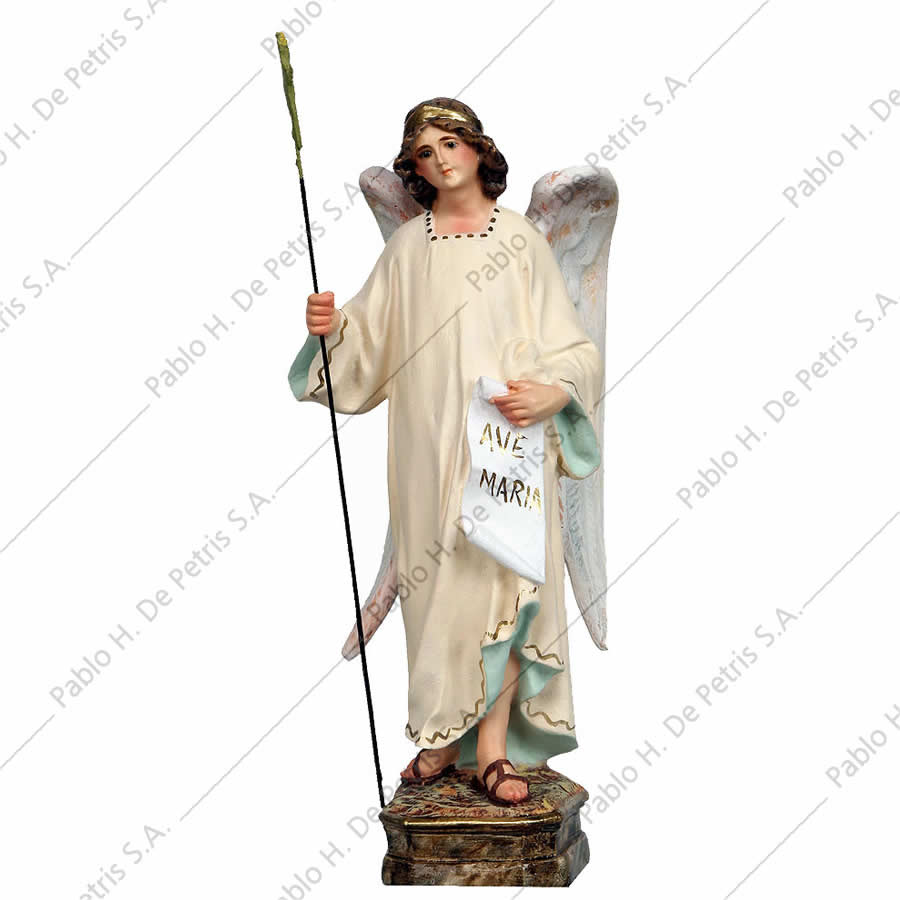 Imagen realizada en pasta madera y pintada a mano al óleo en sus colores tradicionales. Ojos de cristal. Aureola de bronce.