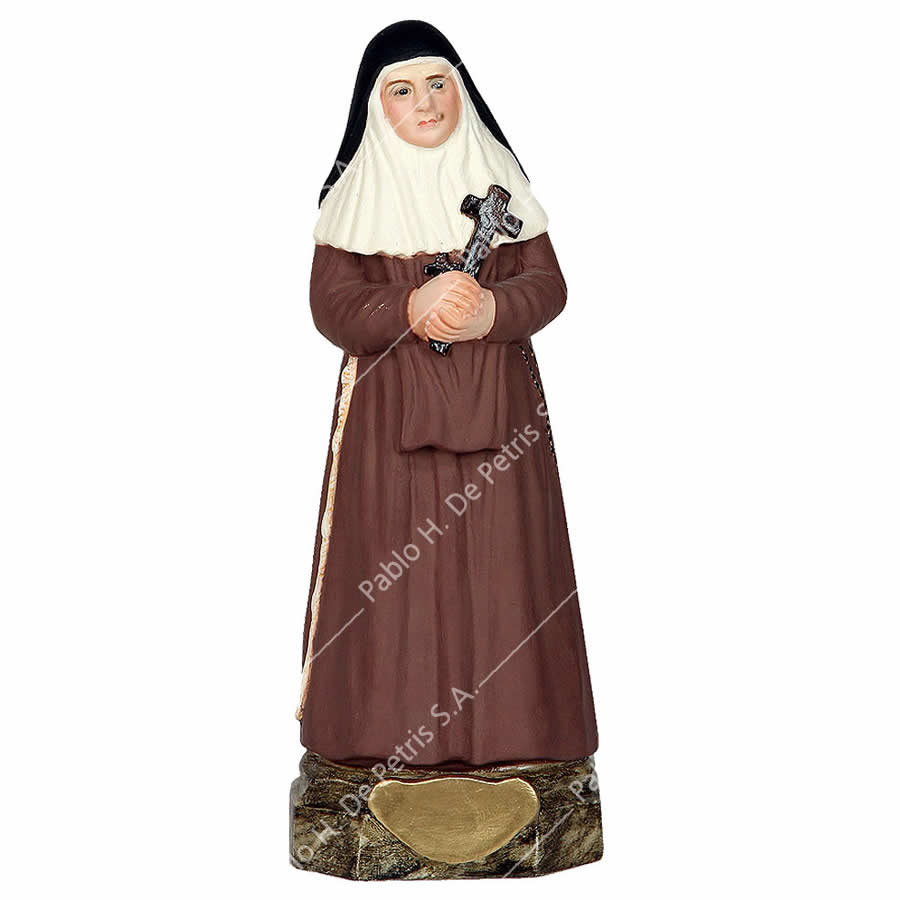 Imagen realizada en pasta madera y pintada a mano al óleo en sus colores tradicionales. Ojos de cristal. Aureola de bronce.