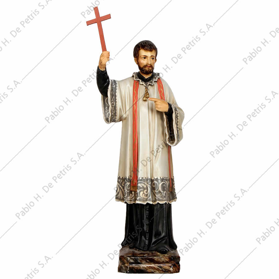 Imagen realizada en pasta madera y pintada a mano al óleo en sus colores tradicionales. Ojos de cristal. Aureola de bronce.