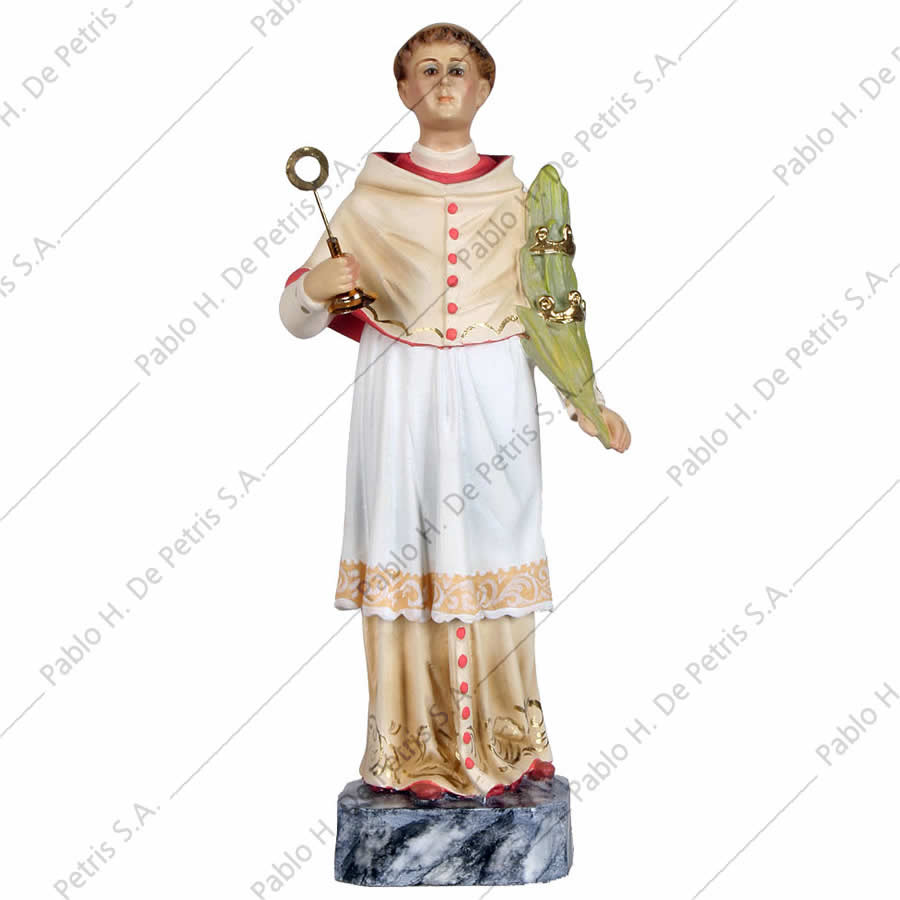 Imagen realizada en pasta madera y pintada a mano al óleo en sus colores tradicionales. Ojos de cristal. Aureola de bronce.