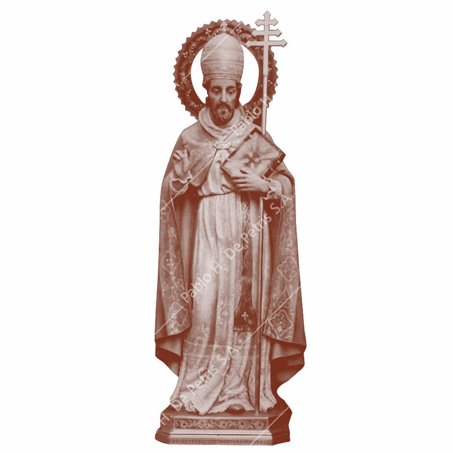 Imagen realizada en pasta madera y pintada a mano al óleo en sus colores tradicionales. Ojos de cristal. Aureola de bronce.