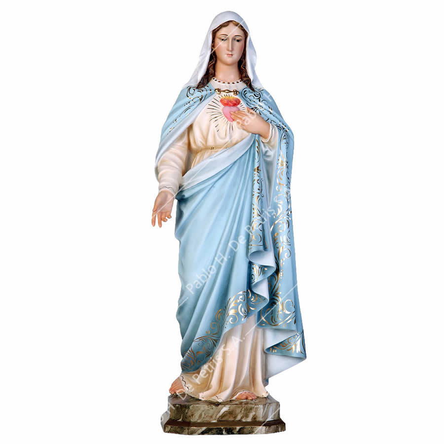 Imagen realizada en pasta madera. Pintada a mano al óleo en sus colores tradicionales. Ojos de cristal. Aureola de bronce.