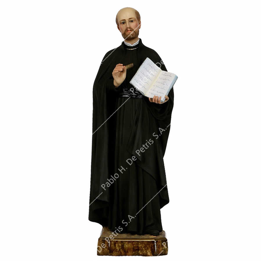 Imagen realizada en pasta madera y pintada a mano al óleo en sus colores tradicionales. Ojos de cristal. Aureola de bronce.