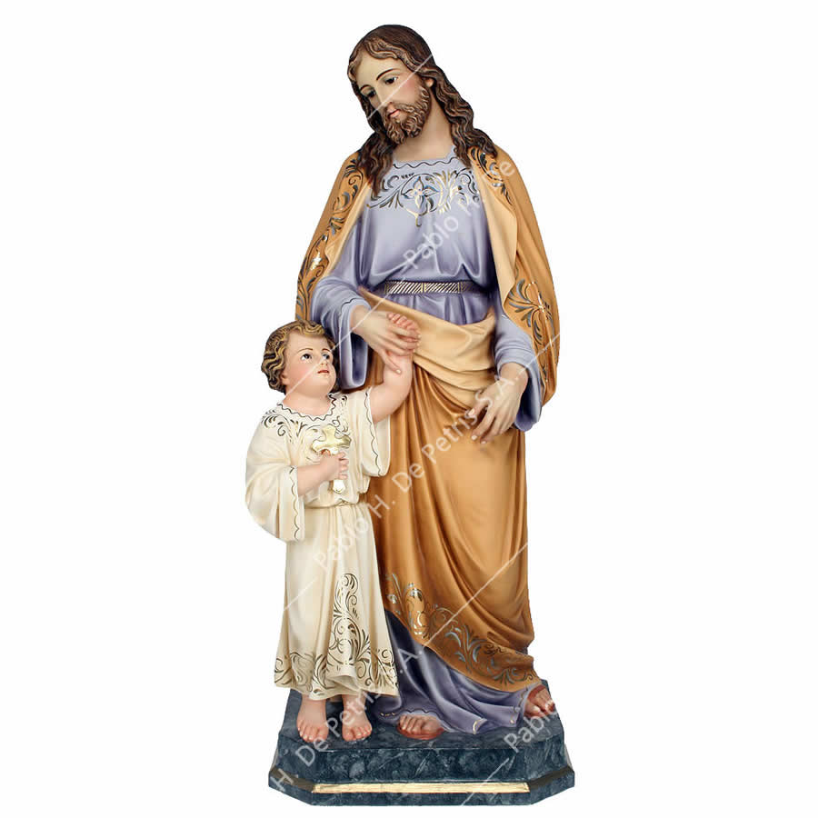 Imagen realizada en pasta madera y pintada a mano al óleo en sus colores tradicionales. Ojos de cristal. Aureola de bronce.