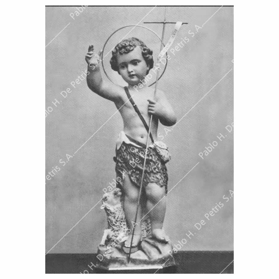 Imagen realizada en pasta madera y pintada a mano al óleo en sus colores tradicionales. Ojos de cristal. Aureola de bronce.