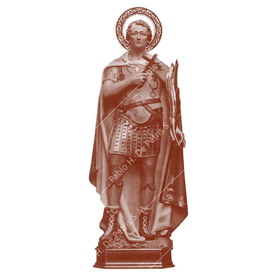 Imagen realizada en pasta madera y pintada a mano al óleo en sus colores tradicionales. Ojos de cristal. Aureola de bronce.