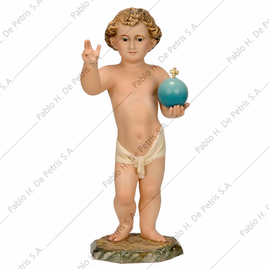 Imagen realizada en pasta madera y pintada a mano al óleo en sus colores tradicionales. Ojos de cristal. Aureola de bronce.