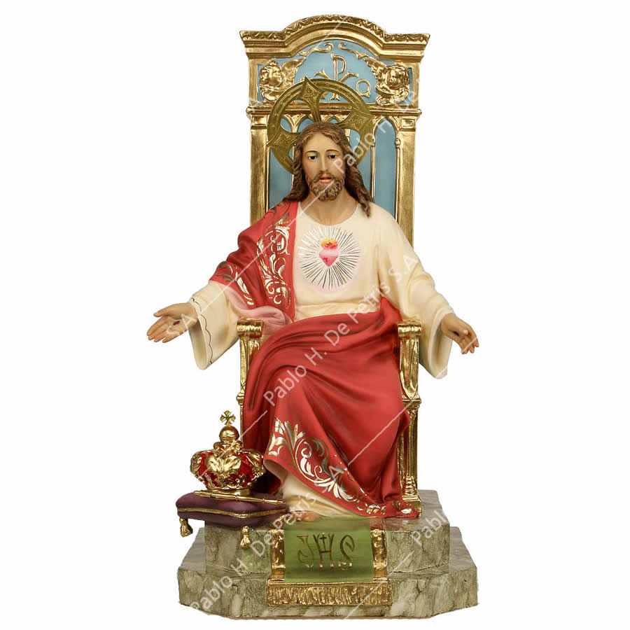 Imagen realizada en pasta madera y pintada a mano al óleo en sus colores tradicionales. Ojos de cristal. Aureola de bronce.