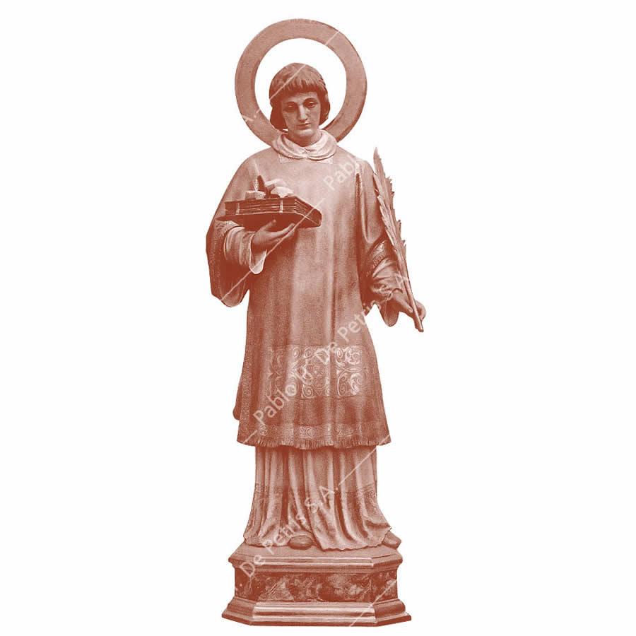 Imagen realizada en pasta madera y pintada a mano al óleo en sus colores tradicionales. Ojos de cristal. Aureola de bronce.
