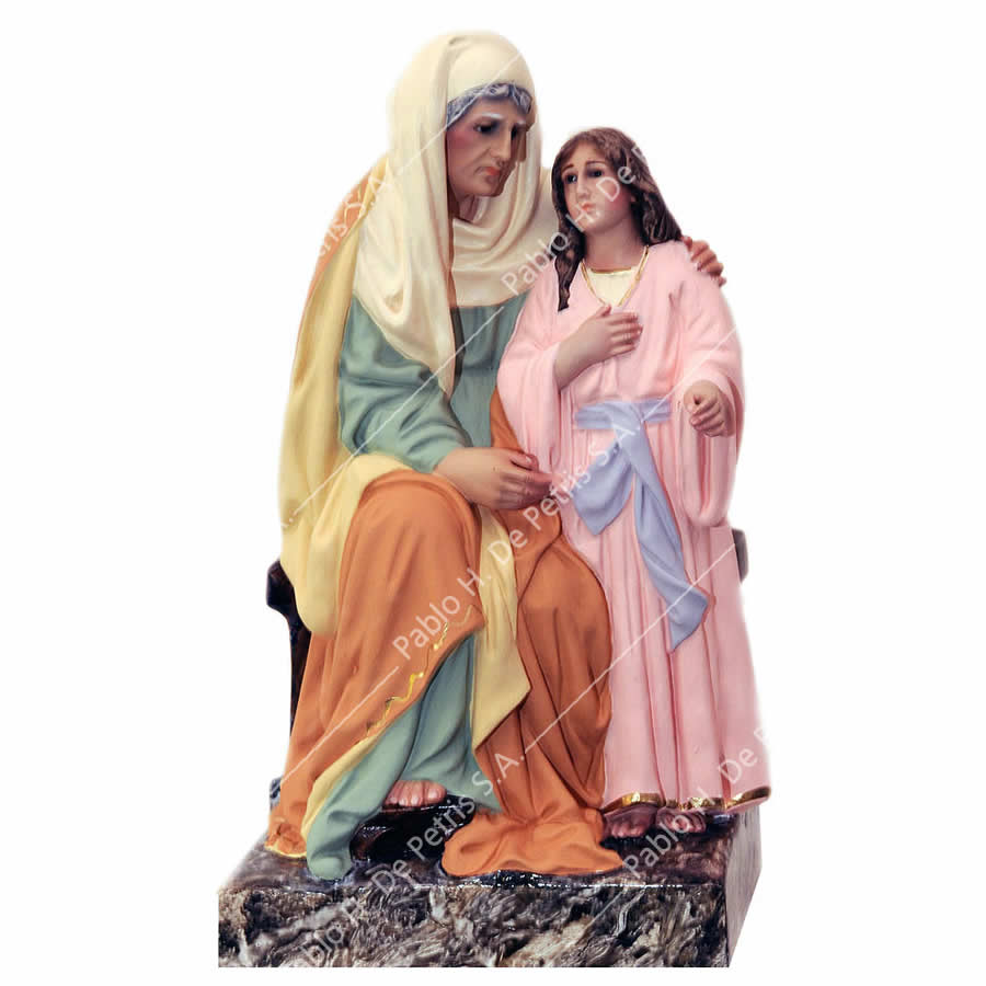Imagen realizada en pasta madera y pintada a mano al óleo en sus colores tradicionales. Ojos de cristal. Aureola de bronce.