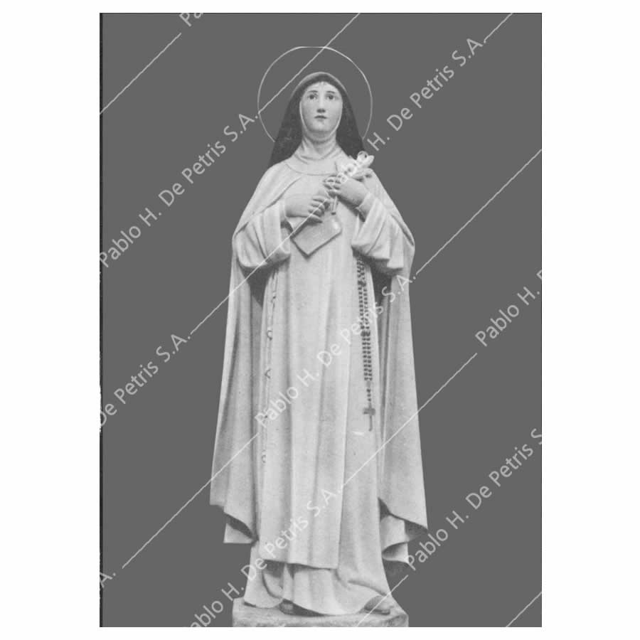 Imagen realizada en pasta madera y pintada a mano al óleo en sus colores tradicionales. Ojos de cristal. Aureola de bronce.