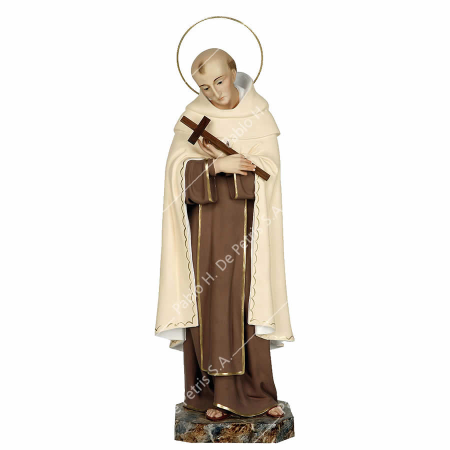 Imagen realizada en pasta madera y pintada a mano al óleo en sus colores tradicionales. Ojos de cristal. Aureola de bronce.