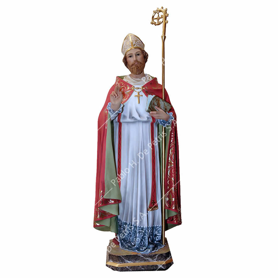 Imagen realizada en pasta madera y pintada a mano al óleo en sus colores tradicionales. Ojos de cristal. Aureola de bronce.