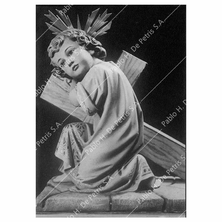 Imagen realizada en pasta madera y pintada a mano al óleo en sus colores tradicionales. Ojos de cristal. Aureola de bronce.