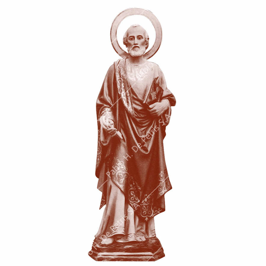 Imagen realizada en pasta madera y pintada a mano al óleo en sus colores tradicionales. Ojos de cristal. Aureola de bronce.