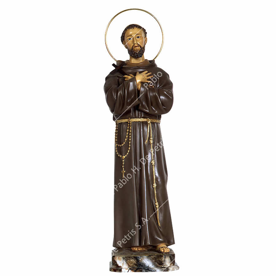 Imagen realizada en pasta madera y pintada a mano al óleo en sus colores tradicionales. Ojos de cristal. Aureola de bronce.
