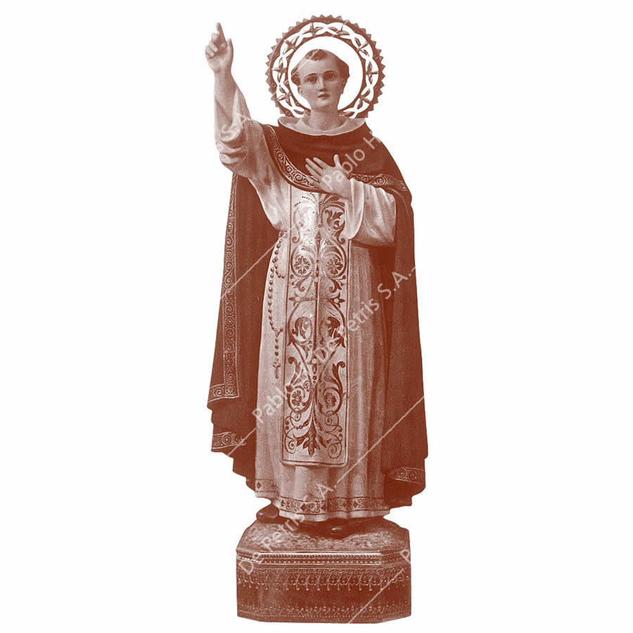 Imagen realizada en pasta madera y pintada a mano al óleo en sus colores tradicionales. Ojos de cristal. Aureola de bronce.