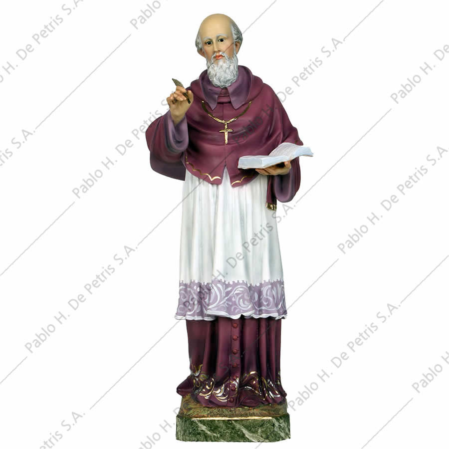 Imagen realizada en pasta madera y pintada a mano al óleo en sus colores tradicionales. Ojos de cristal. Aureola de bronce.