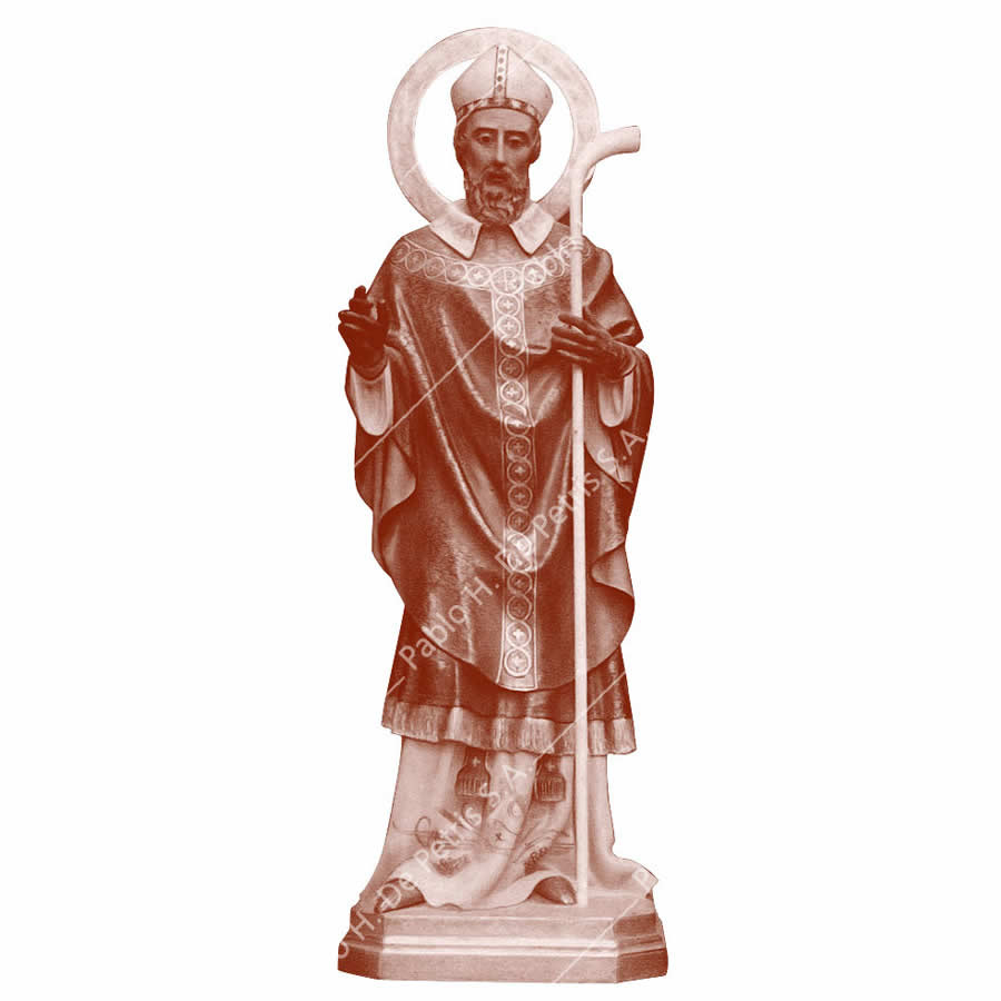Imagen realizada en pasta madera y pintada a mano al óleo en sus colores tradicionales. Ojos de cristal. Aureola de bronce.