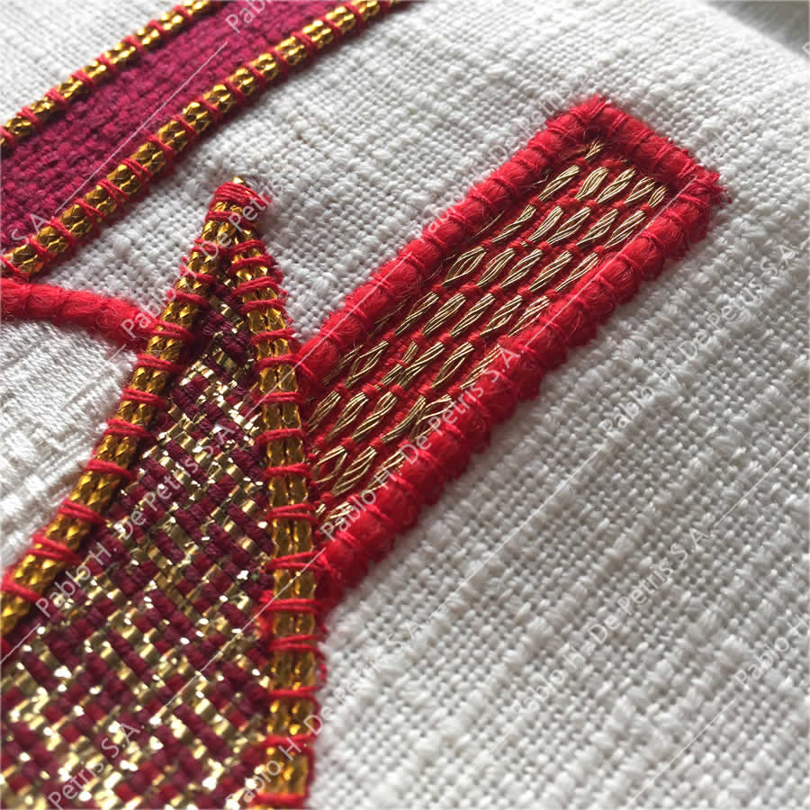 Bordada al frente y a la espalda. Cuello en terciopelo.