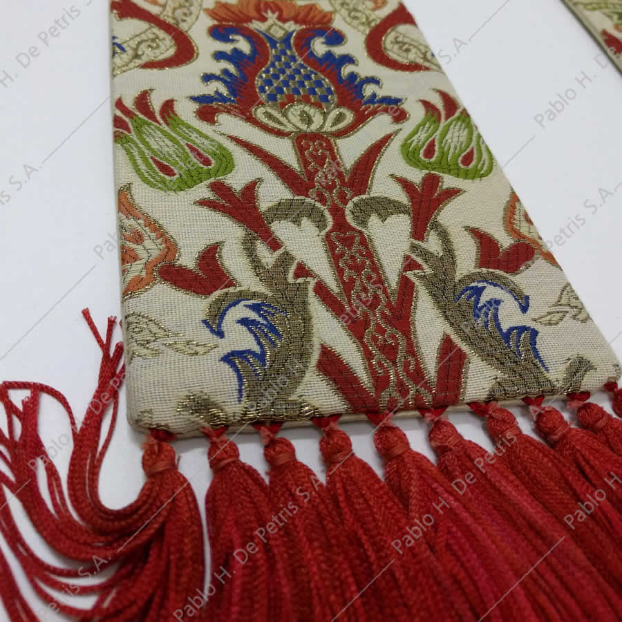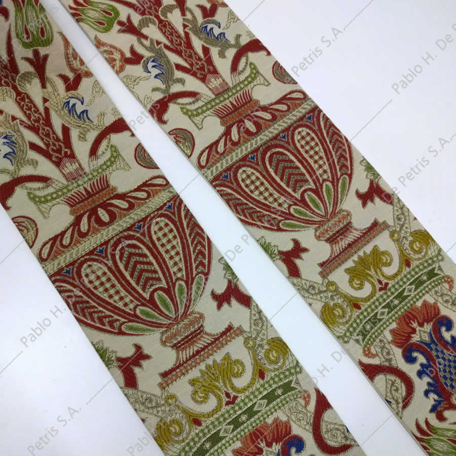 Realizada en mezcla de tejido natural y sintético. No presenta bordado, el diseño es del propio tejido.