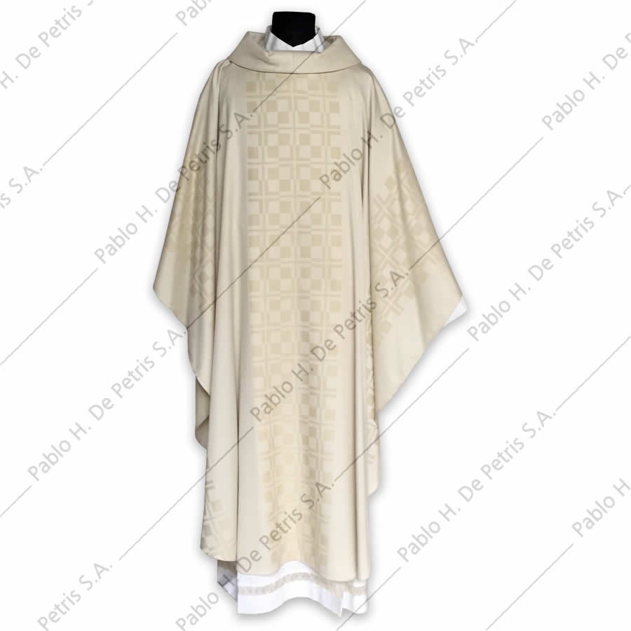 Casulla sin bordado, su diseño es propio del tejido.