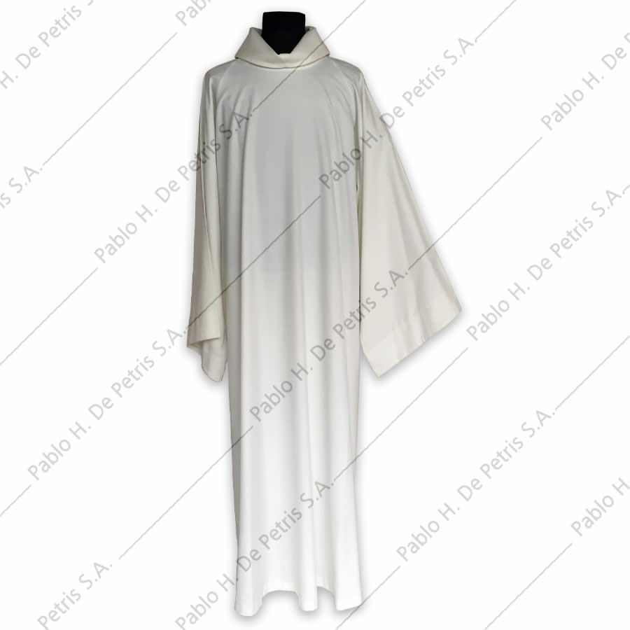 Alba de corte monástico. Realizada en mezcla de tejido natural y sintético.