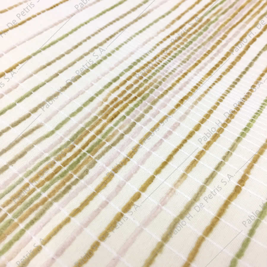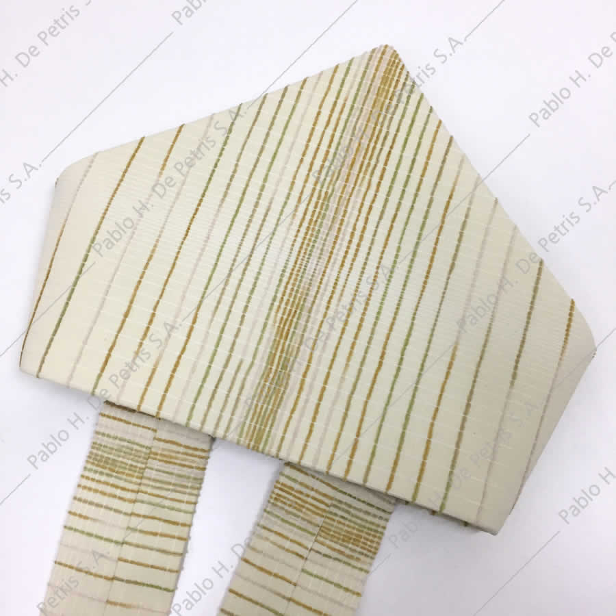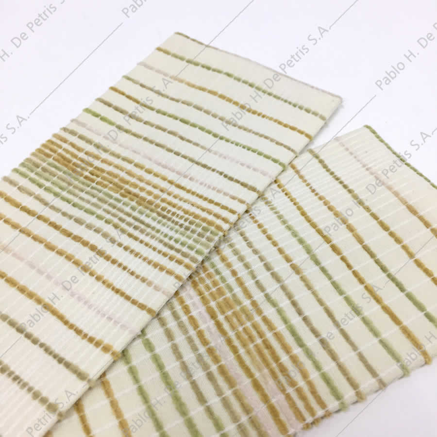 Realizada en tejido natural. Colores matizados incrustados en el tejido.
